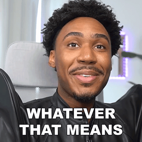 Imurgency reacts with a smile, saying "Whatever That Means" while wearing a black leather jacket.
