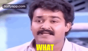 Mohanlal, a man with a mustache, makes a funny, confused face with the word "WHAT" overlaid.