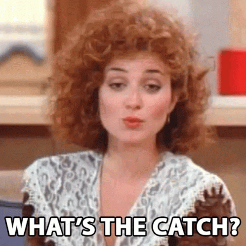 Annie Potts as Mary Jo Shively asks 'What's the catch?' with a questioning expression.