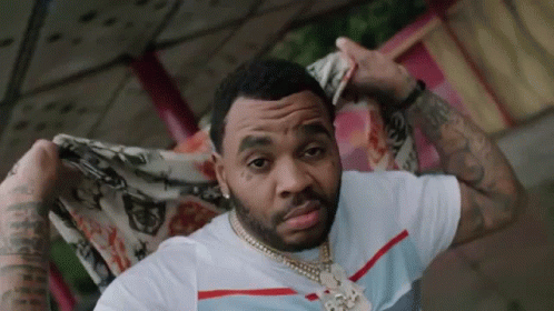 Kevin Gates with a bandana over his head, giving an intense stare directly at the camera.