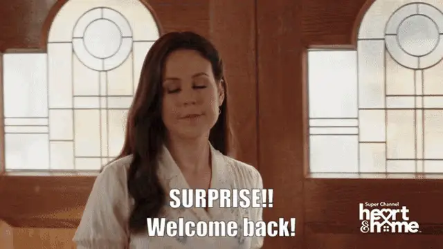 Erin Krakow from When Calls The Heart smiles and says 'Carpe Diem' to a man.