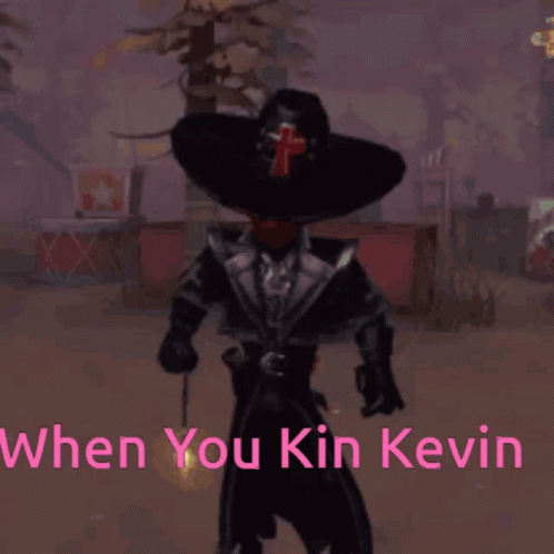 A character in a cowboy hat and mask holds a glowing wand, with the text "When You Kin Kevin" displayed.