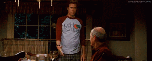 Will Ferrell attempts an awkward handshake with an older man, wearing a 'Pablo Cruise' shirt, from the movie Step Brothers.