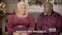 A woman frantically searches for her phone, exclaiming 'Where my phone?!'