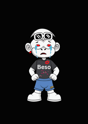 Zhot Jr, a white animated character, is shown crying with blue tears while wearing a 'Beso' shirt.