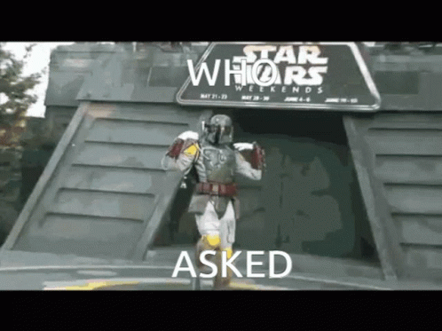 Boba Fett from Star Wars gestures while the text 'WHO ASKED' appears, creating a popular meme.