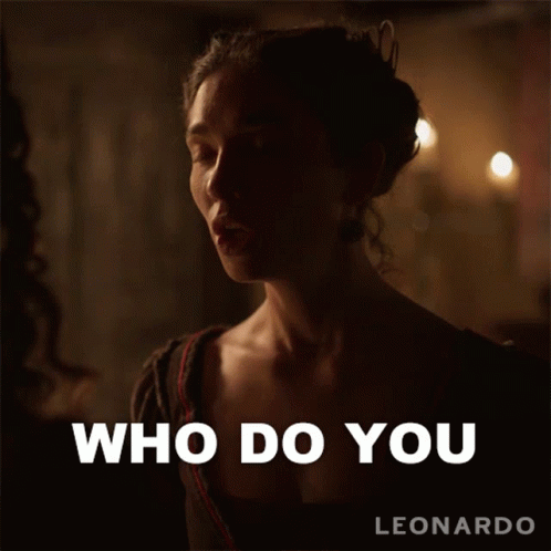 Matilda De Angelis as Caterina Da Cremona confronts someone with 'Who Do You Think You Are?' in Leonardo.