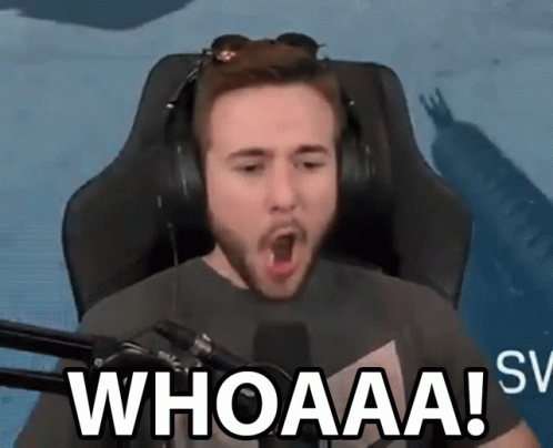 A man wearing headphones reacts with an open mouth, expressing excitement and surprise.
