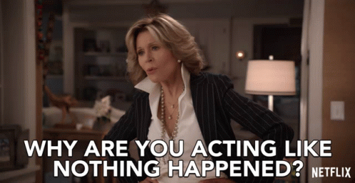 Jane Fonda, portraying Grace Hanson in Grace and Frankie, delivers the line: 'Why are you acting like nothing happened?'