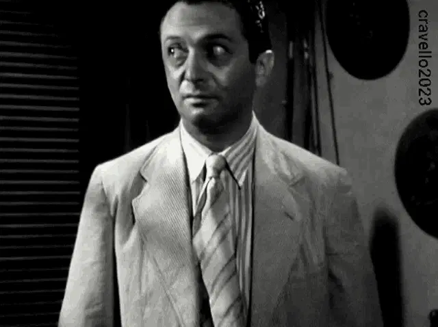 A classic film noir scene with a man and woman, featuring the question 'Why Are You Crying?'