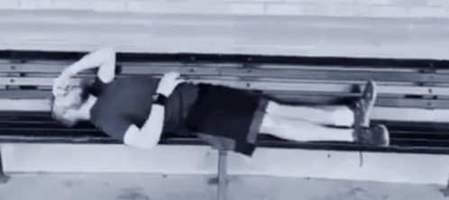 Wilko Wilkes performs sit-ups on a bench, then lies down to rest, appearing exhausted.