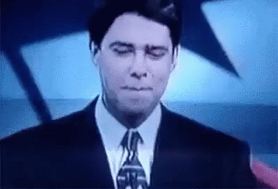 William Bonner, a Brazilian journalist, makes funny puckering and wide-mouthed faces while wearing a suit and tie.
