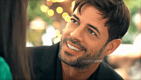 William Levy smiles charmingly during his Telemundo Access interview, looking directly at the camera.