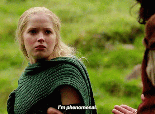 Elora Danan (Ellie Bamber) in a green cape confidently declares, 'I'm phenomenal,' from the Willow TV series.