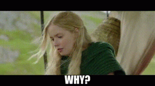 Elora Danan, portrayed by Ellie Bamber in the Willow TV Series, looks surprised with the caption 'WHY?'.