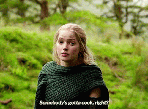 Elora Danan (Ellie Bamber) in Willow asks, 'Somebody's gotta cook, right?' in the woods.