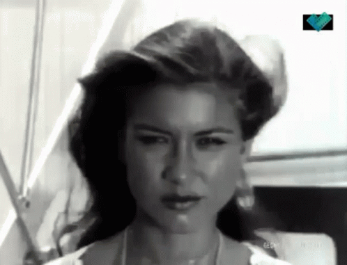 A woman's face in black and white, her hair blowing in the wind, from a Metin Erksan film.