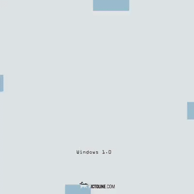 A visual journey through the evolution of Microsoft Windows logos, from Windows 1.0 to Windows 8, including a classic Blue Screen of Death.