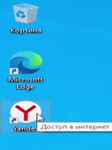 A Windows 10 desktop screen featuring icons for Recycle Bin, Microsoft Edge, and Yandex, with a mouse cursor.