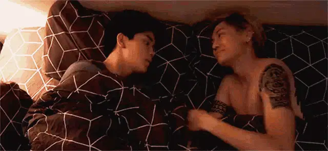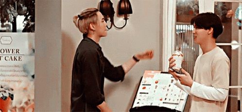 Boun Noppanut playfully ruffles Prem Warut's hair, sharing a sweet WinTeam moment.