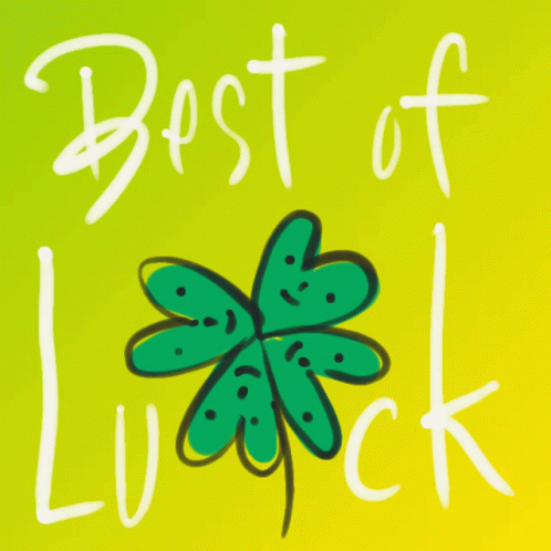An animated drawing of a four-leaf clover with the encouraging message "Best of Luck."