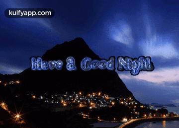 A beautiful night scene with a mountain and city lights, wishing 'Have a Good Night'.