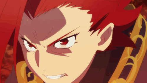 Sion Ulster from Wistoria: Wand and Sword, ready for battle with a sword in a fiery scene.