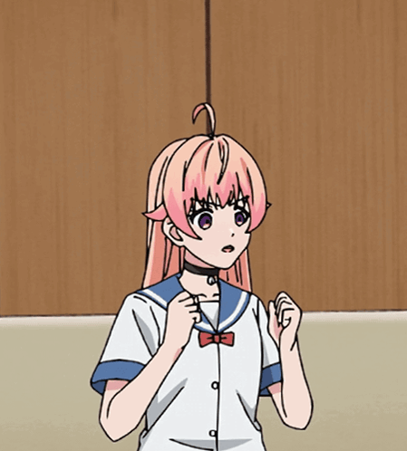 a cartoon of a girl with pink hair and a choker on her neck