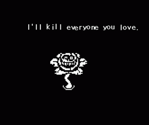 a pixel art of a rose with the words `` i 'll kill everyone you love '' written below it .