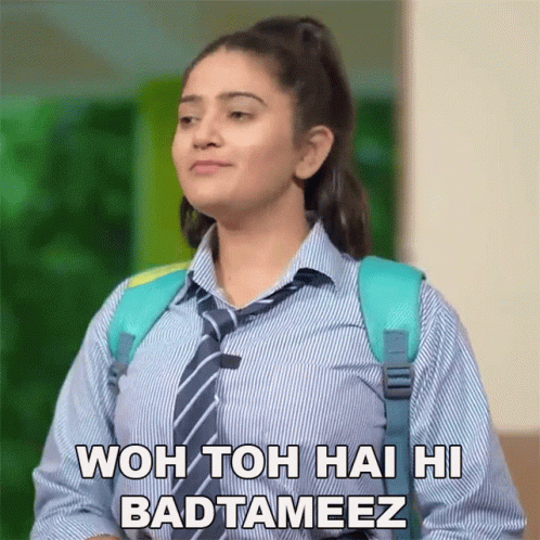 Sibbu Giri in a school uniform says 'Wo Toh Hai Hi Badtameez' (He is indeed ill-mannered).