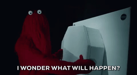 Red Guy from Don't Hug Me I'm Scared ponders the consequences of plugging in an object.