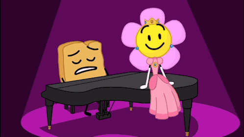 a cartoon character with a smiley face is sitting at a piano next to a teardrop