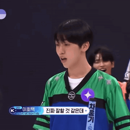 Cha Woonggi reacts during Boys Planet, showing thoughtful and determined expressions while other contestants comment.