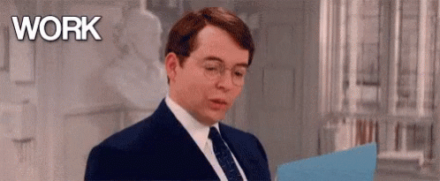 Mathew Broderick as Leo Bloom in The Producers, intensely focused on work.