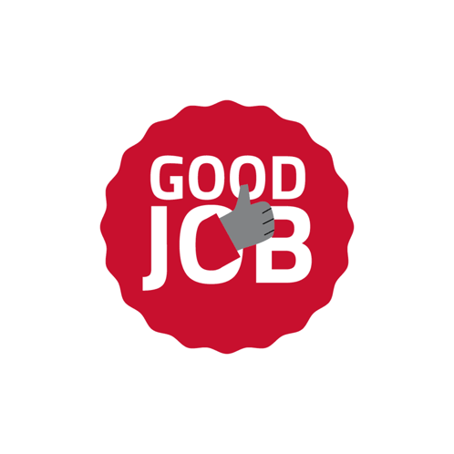 Animated red 'Good Job' sticker with a thumbs-up icon, rotating and folding.