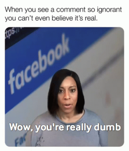 A woman reacts with disbelief and says 'Wow, you're really dumb' to an ignorant comment on Facebook.