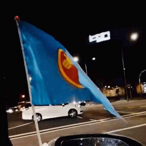 The Workers' Party of Singapore flag waves from a car at night, showcasing political support.