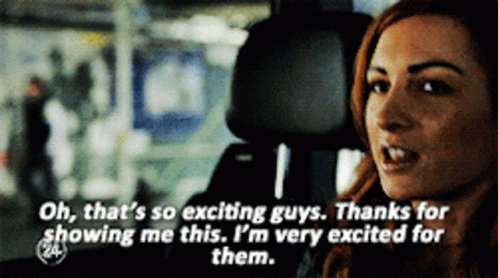 Becky Lynch expresses her excitement, saying 'Oh, that's so exciting guys. Thanks for showing me this. I'm very excited for them.'