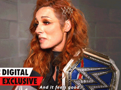 Becky Lynch, the WWE Superstar, expresses her joy while holding the SmackDown Women's Championship belt.