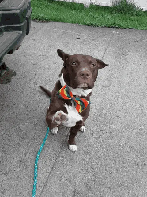 A pitbull dog wearing socks on its paws, questioning its fashion sense with the caption 'Wym my fit ain't hard????'.