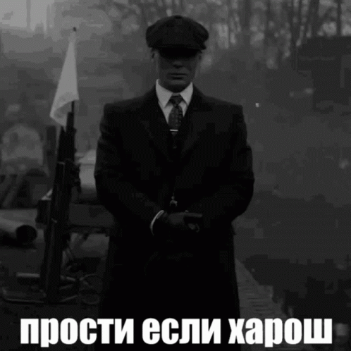 A black and white image of a man in a suit and cap with Russian text 'прости если харош' (forgive if good).