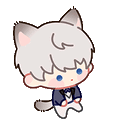 Xavier Kitty in chibi form, from the game Love and Deepspace, wearing a suit.