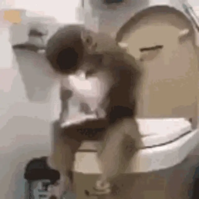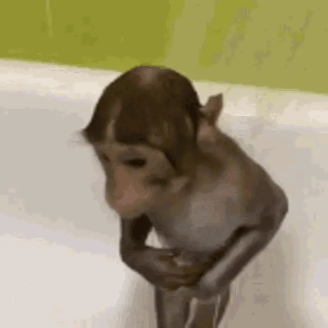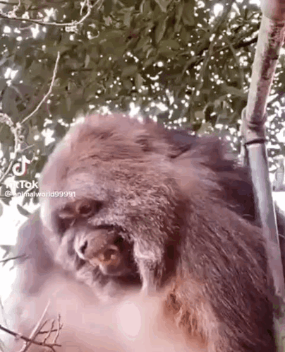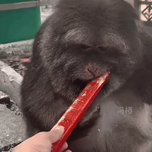 Xing Macaca monkey in a tree, showing its teeth with a wide grin.
