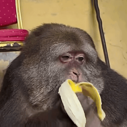 Xing Xingxing, the macaque, enjoys a banana in a cozy setting.