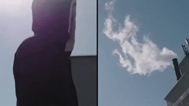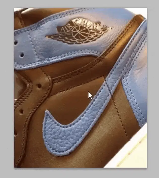 Person wearing white and gray Adidas sneakers, walking and standing on a sidewalk.