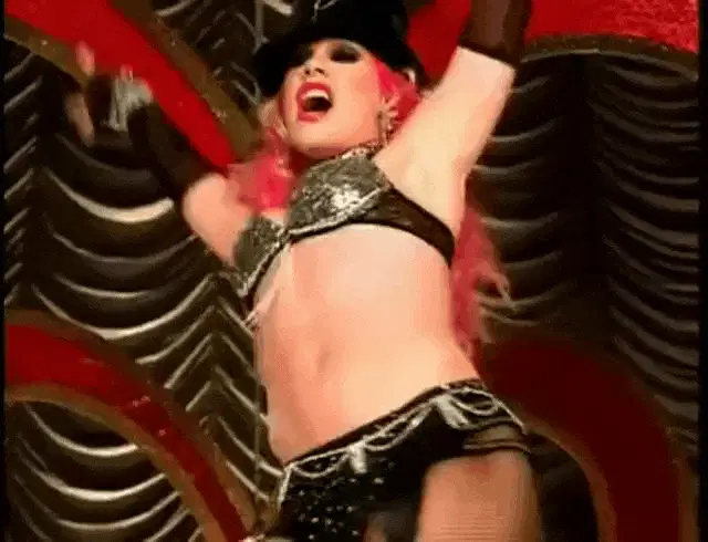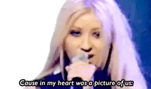 Christina Aguilera passionately singing into a microphone during her Grammy 2011 performance.