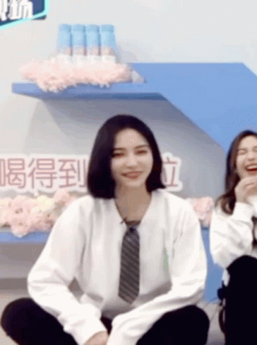Xu Jiaqi Kiki claps and smiles, showing excitement in a white shirt and tie.