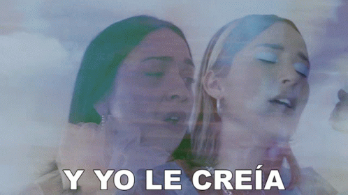 Elsa Y Elmar's emotional song 'Y Yo Le Creia Lo Que Me Decia' with overlaid lyrics, featuring a woman expressing deep emotion.