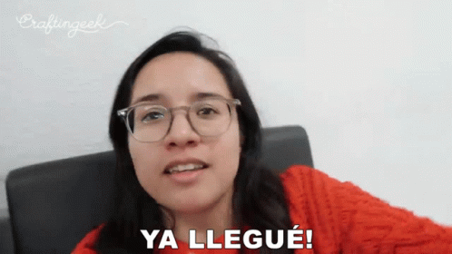Crafting Geek arrives, excitedly announcing 'I'm here!' in Spanish, looking directly at the camera.