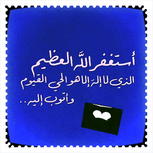 Arabic supplication 'Astaghfirullah Al-Azeem' on a blue background with a heart icon, promoting remembrance of Allah.